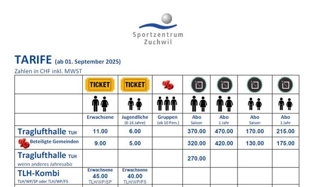 Die Traglufthalle steht der Öffentlichkeit zwischen September und April täglich zu Verfügung. Die Wassertemperatur beträgt 27°. Die Fixzeiten für das 50m-Schwimmbecken sind zwischen 09.30 Uhr und 18.00 Uhr (Sa./So. 09.00). Abweichende Zeiten sind auf einem dynamischen Wochenplan ersichtlich, dabei gilt es jeweils zu beachten, welche Bahnen für die Öffentlichkeit gedacht sind: Belegungsplan