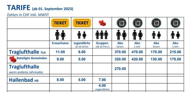 Für regelmässige Schwimmer empfehlen wir das Lösen eines Abos (Kombinationen, beispielsweise mit Freibad, sind möglich).